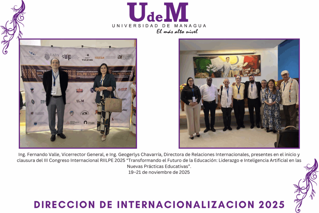 La Universidad de Managua se enorgullece en participar activamente en el III Congreso Internacional RIILPE 2025 “Transformando el Futuro de la Educación: Liderazgo e Inteligencia Artificial en las Nuevas Prácticas Educativas”, realizado del 19 al 21 de noviembre en la Facultad de Educación de la Universidad Autónoma de Yucatán, México.
