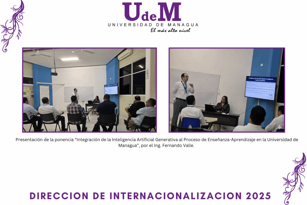 Durante el congreso, el Ing. Fernando Valle presentó la ponencia: “Integración de la Inteligencia Artificial Generativa al Proceso de Enseñanza-Aprendizaje en la Universidad de Managua”, destacando los avances y desafíos de la transformación digital en la educación superior.